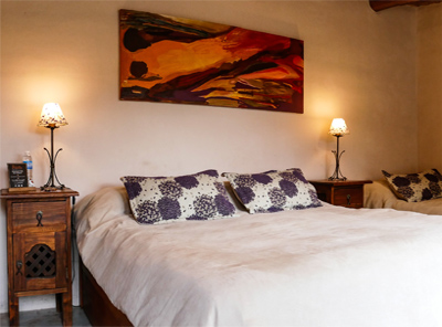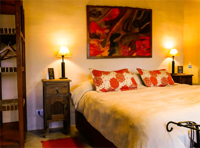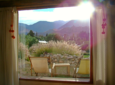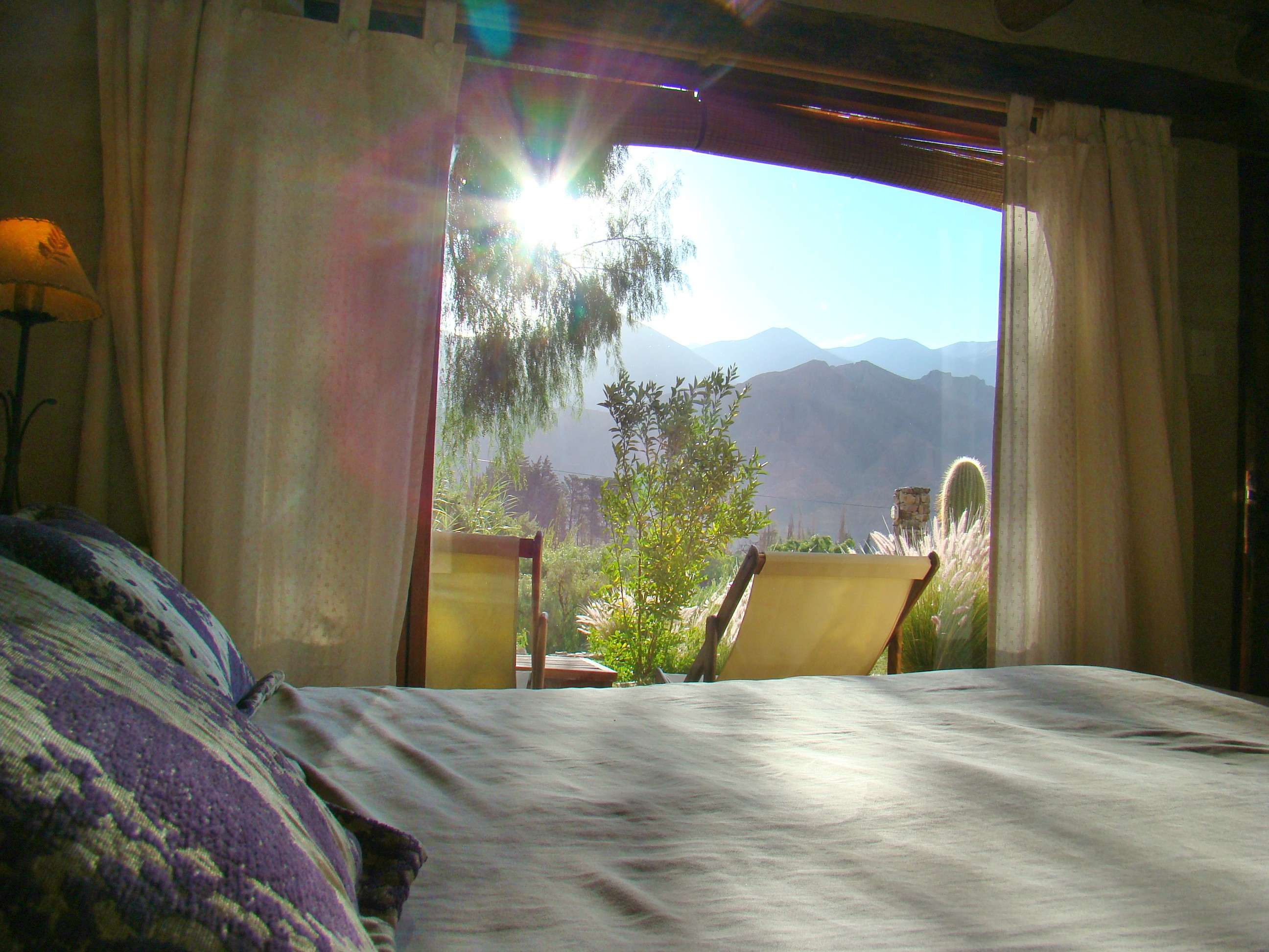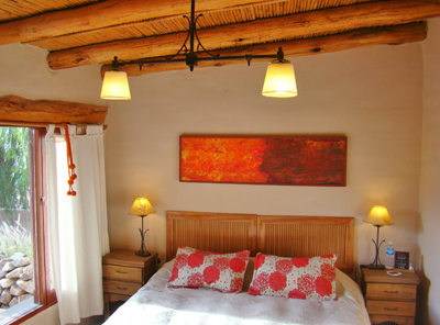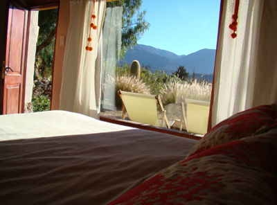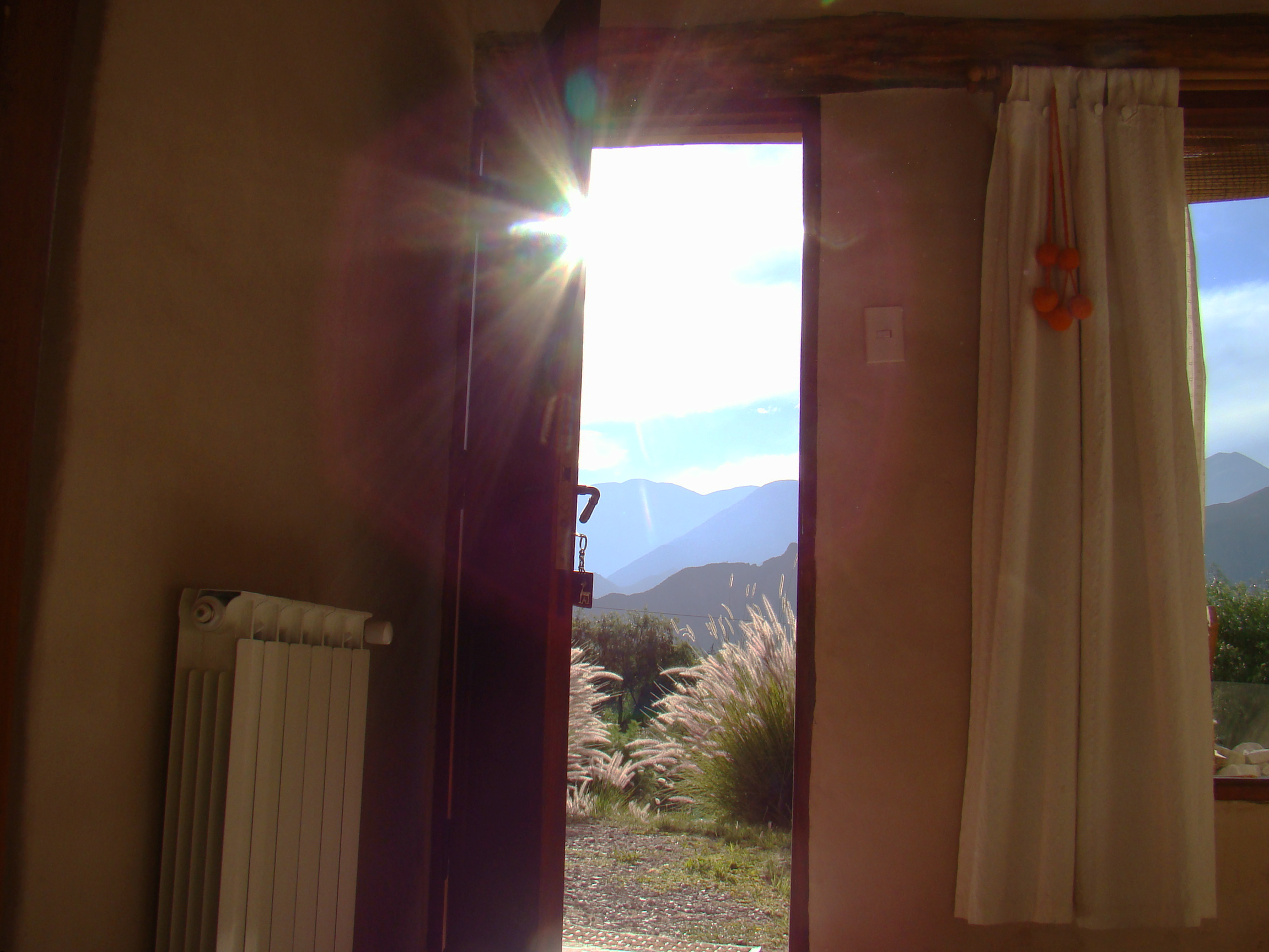 La arquitectura típica de la zona, paredes de adobe con techos de caña y barro integran las cuatro habitaciones que miran desde lo alto a la Quebrada de Humahuaca y al pueblo de Tilcara, donde el turquesa profundo del cielo y los matices de los cerros envuelven al huésped haciéndolo parte del lugar desde un ambiente cálido que invita al encuentro y al descanso.
