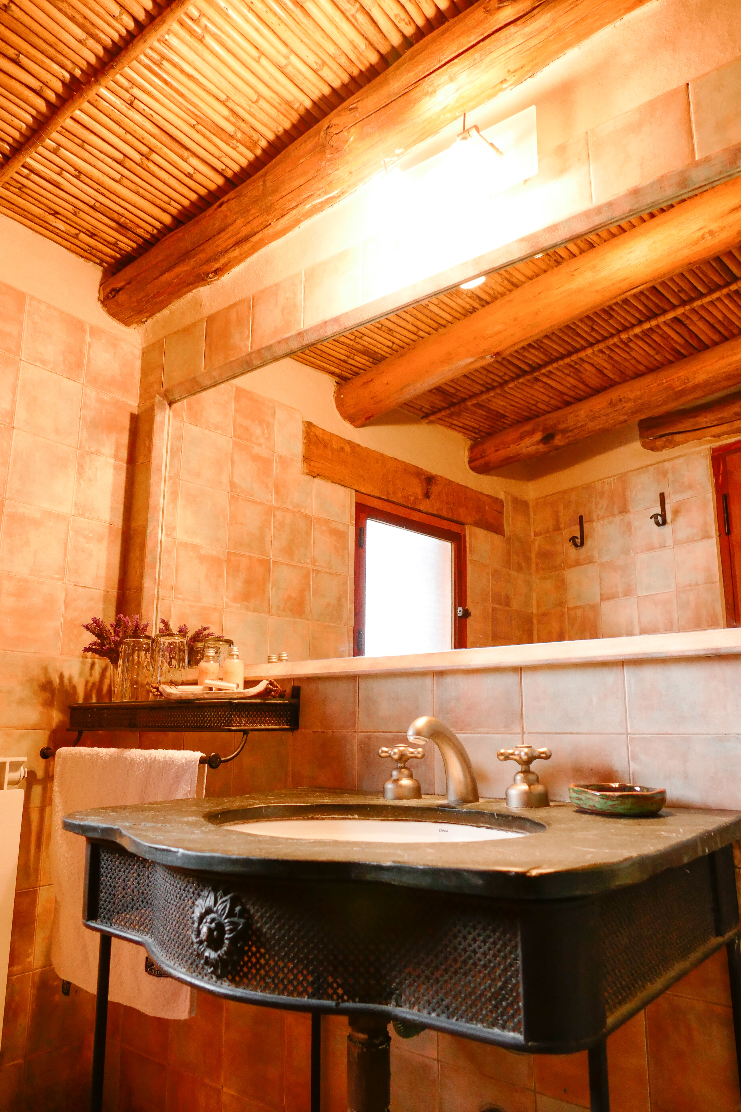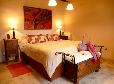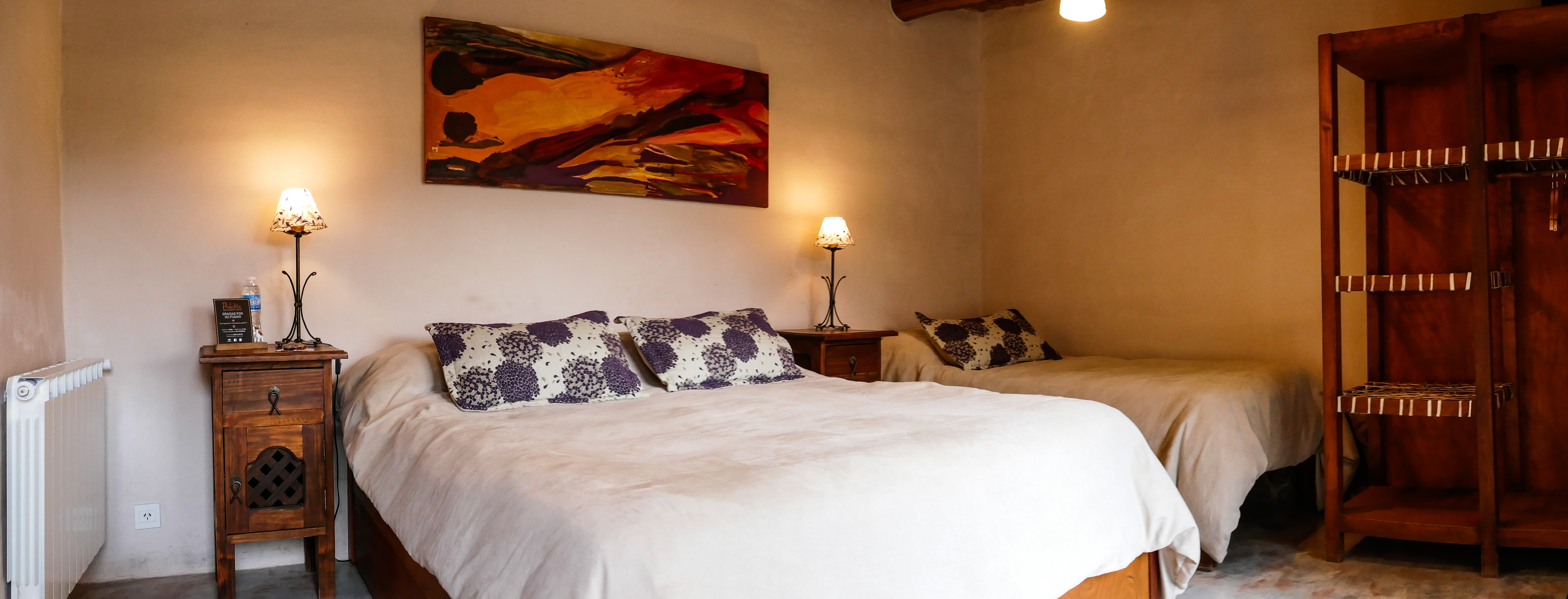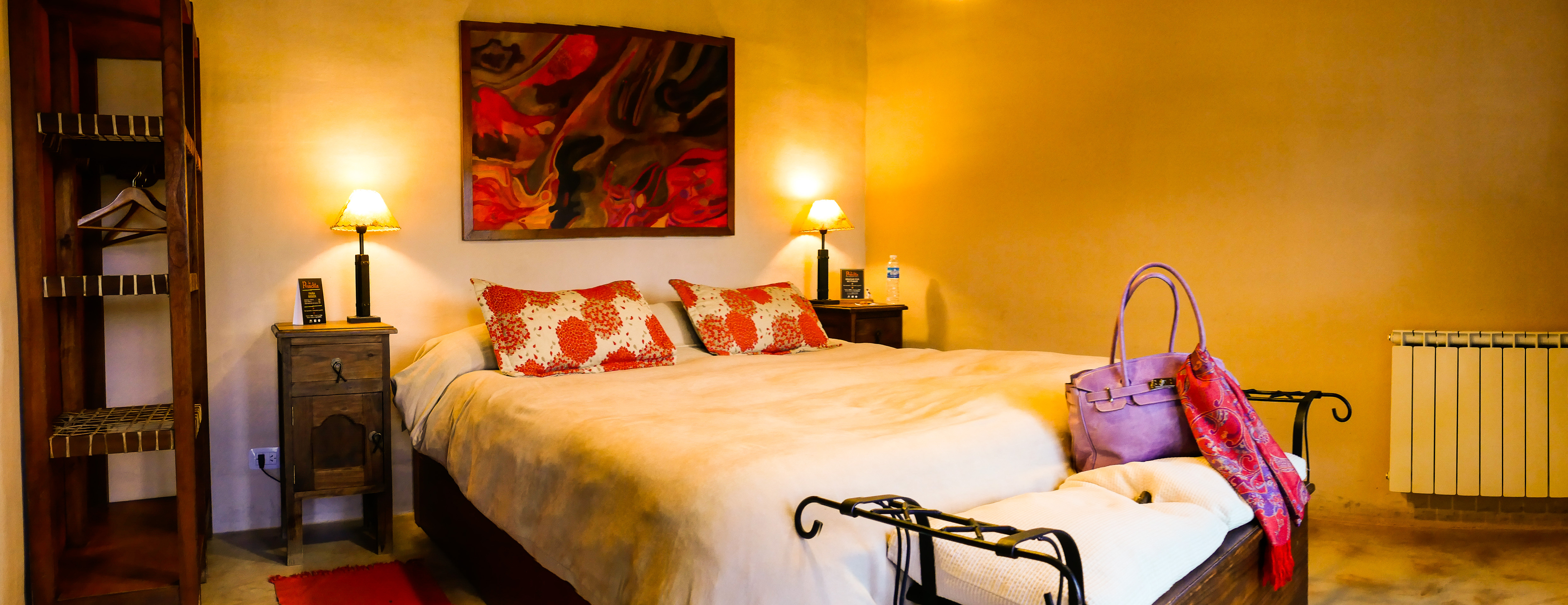 La arquitectura típica de la zona, paredes de adobe con techos de caña y barro integran las cuatro habitaciones que miran desde lo alto a la Quebrada de Humahuaca y al pueblo de Tilcara, donde el turquesa profundo del cielo y los matices de los cerros envuelven al huésped haciéndolo parte del lugar desde un ambiente cálido que invita al encuentro y al descanso.